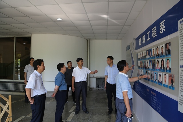 9月1日上午,校区管理委员会副主任、党委书记李正军,校长谭英杰,副校长刘祥楼、乔文峰等校庆领导小组成员,到第二实验楼和第一教学楼检查督导建校60周年校庆筹备工作。